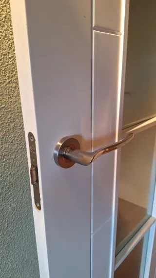 Puerta de madera maciza con un diseño clásico y elegante, con tirador y condena, medidas 62*203. También vendo 2 puertas de madera maciza con cristal y manilla color dorado de 72*203, 3 puertas sin cristal de la misma medida, otra de 62*203 de baño y una doble con cristal de 82*203 y el lado pequeño 34*203. Mirar mi perfil. Precio negociable si se compran varias