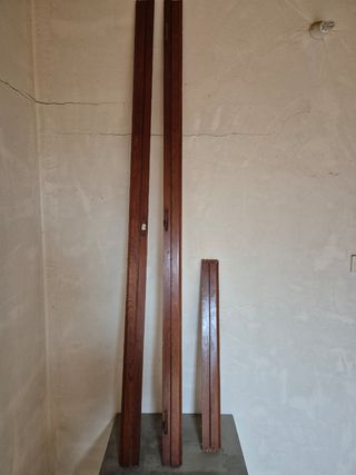Se vende puerta de interior en madera sapeli, todas con diseño clásico y cuarterones de cristal translúcido. Son puertas de muy buena calidad, robustas y perfectas para dar luz a pasillos, cocina o salón manteniendo una estética cálida y tradicional. Incluyen su marco original y manillas en acabado dorado. Están en buen estado, con uso normal. Ideales para reformas completas o para quien quiera un conjunto homogéneo de puertas de calidad. Abre a la izquieeda (72×2 m)