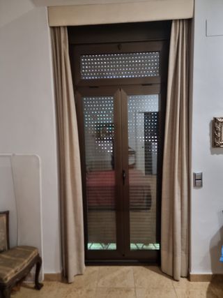 balconera de aluminio bronce con cristal climalit. Pongo las medidas y características. Es motorizada con mando a distancia. Ventana y persiana bronce. 1,10x2,73 con motor, centralita y mando. balconera, ventanal grande, puertas, aluminio, fijo, ventana
