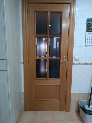 Puerta de cocina, madera y cristal. Se regala marco de puerta.