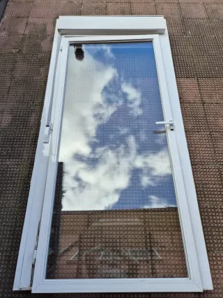 Puerta de aluminio con marco y persiana en blanco. Medida de la hoja 207x94 cm. Negociable. - Marco de aluminio. - Cristal transparente. Puerta/aluminio/terraza/blanca/carpintería/