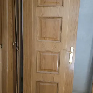 Puertas de madera de interior, con un diseño moderno y acabado natural. Puerta 1: 5 puertas 203x72 cm Puerta 2:Puerta con cristal 203x82cm +43 cm Puerta 3: puerta corredera 202x 75 cm( más rail) Puerta 4:puerta con cristal 203x73 - Material: Madera. - Color: Tono madera natural. - Incluye manilla plateada ,molduras y embellecedores. IMPORTANTE: recoger para finales de marzo, principios de abril. Precio 180€ negociable, recogida en casa