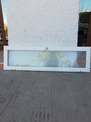 Ventana de aluminio en color blanco con apertura abatible. Medidas 158 cm de ancho por 45cm de alto - Marco de aluminio. - Cristal incluido.