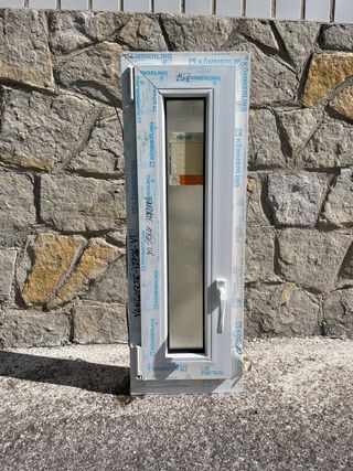 Ventana de PVC blanco con cristal Climalit. - Marca Kömmerling. - Marco de PVC blanco. - Cristal Climalit. - medidas 35 ancho, 1,00 alto, 6cm profundidad de marco - doble cristal climalit 11cm ancho y alto 74,5 de alto - hueco de ventana 22cm de ancho y 85cm de alto