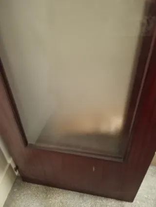 Se vende lote de puertas que necesitan reparación. Son 3 de madera completas y dos con cristales, necesitan reparación completa, las quería lijar y pintar pero no tengo tiempo, hay una que está completamente lijada - Puerta de madera oscura. - Diseño con cristal y molduras.