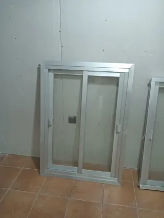 Conjunto de ventanas correderas de aluminio. Medidas; 1'60 de ancho por 1'15 de alto. Más compacto Tengo 3 unidades iguales La unidad 130 euros... - Marcos de aluminio blanco. - Doble cristal. - Listas para instalar.