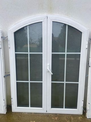 Ventana doble con acabado arqueado en la parte superior. Ideal para exteriores. - Doble cristal. - Diseño con divisiones.
