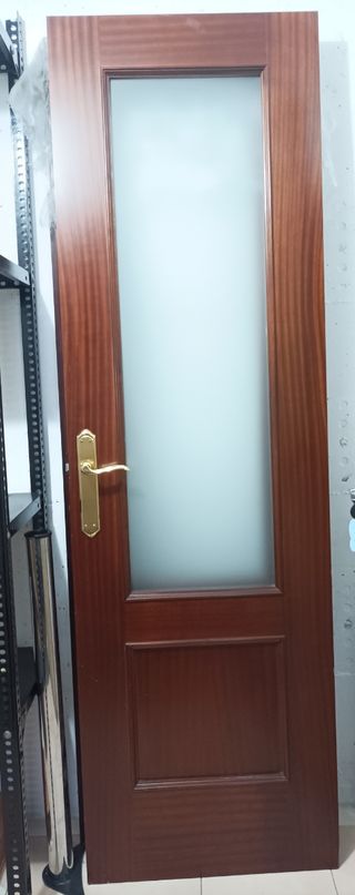 Puerta de madera con un panel de cristal. Medidas 190 cm x 69.5cm60 - Marco de madera oscura. - Panel de cristal translúcido.