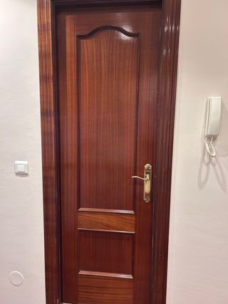 Puerta maciza madera con molduras.