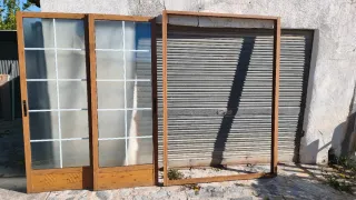 Conjunto de puertas de cristal con marcos de aluminio. Se regalan además mas de 60 cristales de diferentes tamaños - Marcos de aluminio. - Cristal transparente. Se escuchan ofertas
