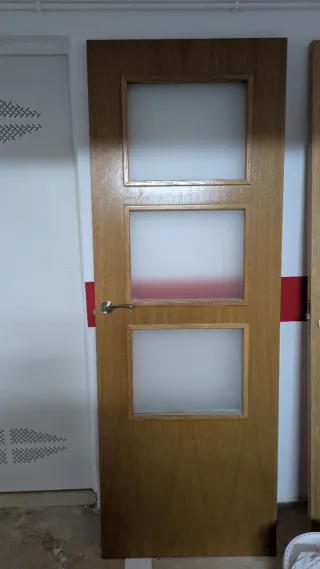 Puerta de interior de madera con tres paneles de cristal. - Diseño moderno y luminoso. - Acabado en madera clara. - Una puerta mide 75 y otra 85 cm. - En perfecto estado, las vendo por reforma.