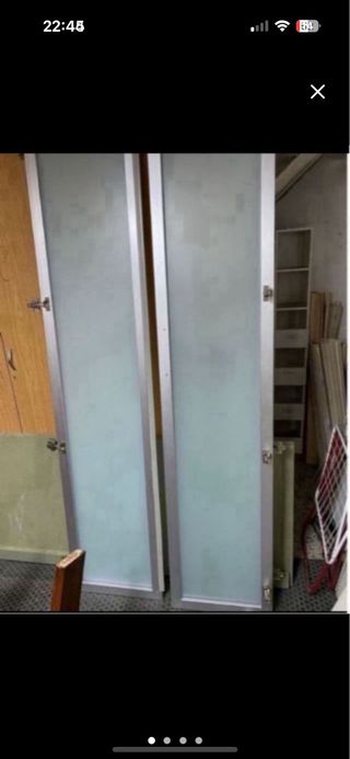 Dos puertas correderas. Se incluye el cristal y dos guías de aluminio. 95 de ancho x 154 de alto, para guía de aluminio de 180. Cristales en perfecto estado.
