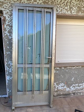 Puerta 225x75 aluminio. Medidas 75 de ancho x 225 de alto. Usada. Se vende puerta de aluminio sin marco exterior color blanco, con cristal doble. Solo lo que se ve en la foto. Tambien se venden otras puertas y ventanas de aluminio y hierro de otras medidas, ver listados con las medidas entre las imagenes. Blanco, plata, verde, etc.