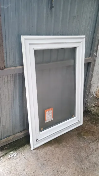 Se vende ventana NUEVA Fija de aluminio, Medidas de la ventana fija 100x67. Medidas del exterior de las guarniciones 114x80. Color blanco por un lado, con guarniciones colocadas y color marron tipo bronce por el otro. No abre. Tiene las guarniciones incluidas por el lado blanco. Cristal ya colocado, cristal opaco tipo baño con camara para mayor aislamiento. Esta nueva, sin estrenar, al final no se coloco. Ventanas y puertas de aluminio. Hay alguna mas, ver listados entre las fotos, alguna puerta y ventana.