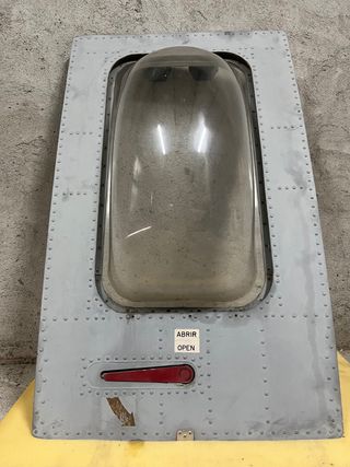 Puerta de avión. Medidas 96 cm alto, 55 ancho y 6 cm grosor fuselaje y 22 grueso con el cristal bulbado.