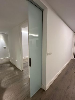 Puerta corredera con acabado en cristal. Ideal para separar ambientes o puerta de paso - Diseño moderno y minimalista. - Guia de alumnio oscuro