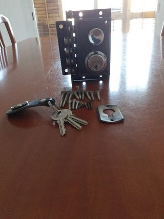 Cerradura de seguridad JIN para puertas de entrada. Incluye juego de llaves y tornillería. - Mecanismo de alta seguridad. - Acabado en color negro. - Incluye 3 llaves. - Placa de seguridad para el exterior.