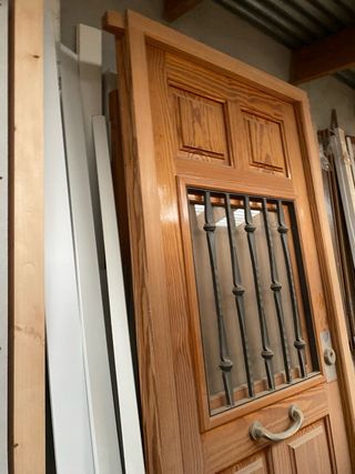 Puerta madera entrada con reja y postigo