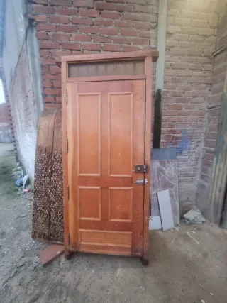 Puerta de entrada de madera con bisagras a la izquierda,lleva dos llaves y triple cerrojo en tres partes arriba,medio,abajo,medidas 2.03 de alta x 81 de ancha x 4 cm de grosor