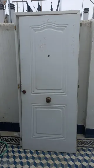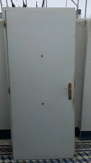 Se venden puertas de entrada metálicas, ideales para exteriores. con sus respectivos marcos y juego de llaves medidas 2 metros de ancho y 1,70 de alto tambien tengo una puerta de aluminio blanco con barrotes y cristal medidas preguntar - Material: Metal galvanizado. - Diseño: Acanalado vertical. - Incluye una puerta con manilla.