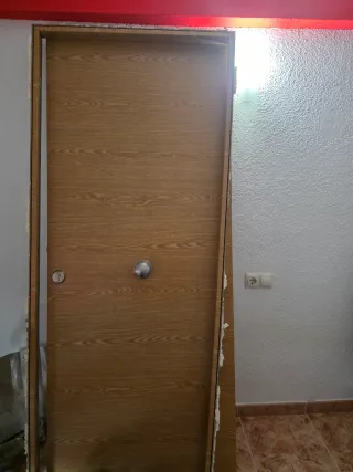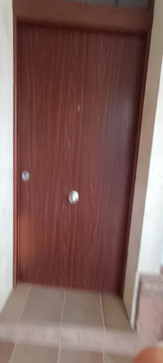 Puerta de entrada. - Marco blanco. No se pone amarilla porque es de buena calidad, se cambia por reforma. Es de seguridad disponible a partir de mediados de enero