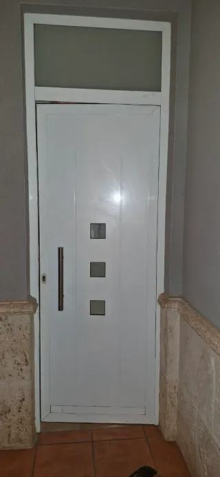 Puerta de entrada blanca con cristal