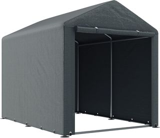 La tenda garaje Outsunny ofrece amplio espacio para guardar hasta 2 bicicletas, una moto o herramientas de jardín de manera ordenada. Realizada en tejido PE resistente a los rayos UV, protege del viento, la lluvia y el polvo. La estructura de metal galvanizado garantiza durabilidad y resistencia al agua. Dotada de una gran puerta con cremallera para un acceso facilitado. Dimensiones: 120L x 179P x 165A cm; puerta: 106L x 126A cm. Incluye: 1 tenda garaje, 6 estacas, 6 tornillos de expansión, 15 cuerdas y manual de instrucciones. Montaje requerido. Color: gris oscuro.
