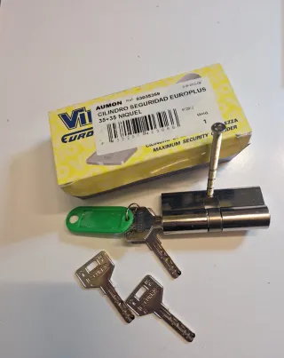 -Bombín/cilindro de 65mm (30/35mm) de latón niquelado para puerta interior. -Cerradura completa, incluye tres llaves dentadas (sierra) reversibles y tornillo pasador. -Longitud de cilindro: 65mm (30+35). -Tipo de cilindro: 2 entradas por llave. -Completamente nuevo, sin estrenar, se reemplazó inmediatamente de una casa de obra nueva. -Dispongo de 3 juegos completos con distinta llave cada uno. -Se venden juntos o por separado (5€/ud). -Puedo enviar, y también entregar en Barcelona o Mollet del Vallès.