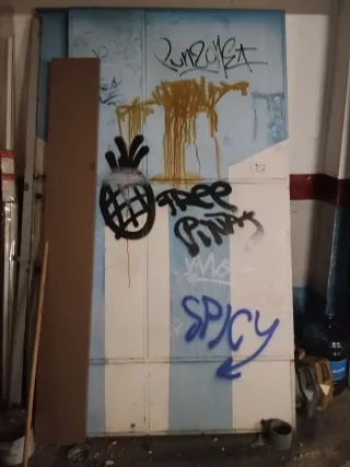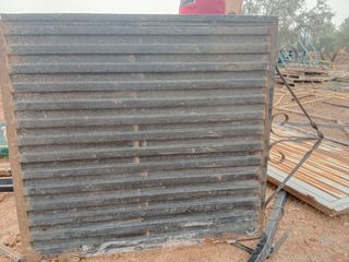 Puerta de garaje metálica, ideal para tu entrada. estructura de hierro reforzado - Medidas aproximadas: 2,65 m de ancho x 2,42 m de alto. - Altura total con marco: 2,42 m. La puerta está nueva, nunca se ha utilizado, se encargó y no se montó. tiene polvo y algunas gotas de pintura Está en Sierra Nevada, no se envía, hay que ir a por ella. cualquier duda no dude en contactarme