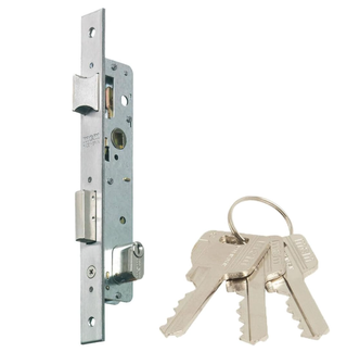 Cerradura metálica de la marca MCM, modelo 1550-21, con acabado inoxidable. - Entrada de 18mm. - Incluye juego de llaves.