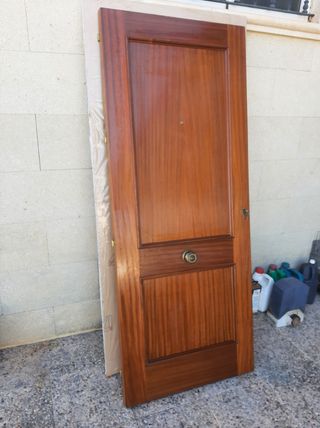 Puerta de entrada de madera de sapele, viene con la cerradura instalada y mirilla. Las medidas son 201,5x81,5x4 cm. Sin marco.