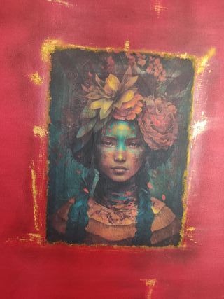 Espectacular marco de ventana convertido en una pieza original y exclusiva con mucha personalidad, ideal como cabecero, estilo sabby chic romántico francés oro viejo y burdeos con papel decoupage acabado, con pátina de cera oscura, cera natural incolora y cera dorada. Medidas 130 ancho, 94 alto, 11,5 fondo. Ideal en cualquier ambiente y estancia, decoración única y exclusiva ninguna pieza igual, decoración escarapates, eventos, dormitorio, entrada, salón, etc. Actualización de cualquier tipo de mueble, cómoda, mesitas, mesillas, aparador, alacena, vitrina, mesa, sillas, librería, mesa tocinera antigua, puerta, escritorio, bureau