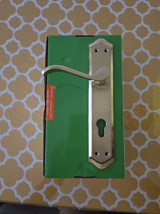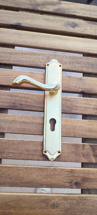 Manivela de puerta con orificio cerradura. Dorada
