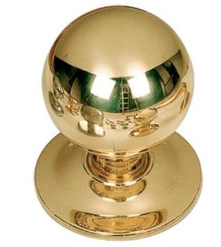 Pomo para puerta de entrada de acabado latón pulido y de diseño esférico sencillo que permite colocarlo en todo tipo de estilos decorativos.