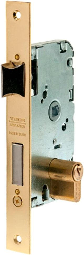 Cerradura de embutir para puertas de madera, Función de entrada, Acero Latonado Frente estrecho de 20 mm El cilindro acciona la palanca (2 vueltas) y el picaporte La nueca acciona el picaporte Realizamos Envios a toda España, Italia y Portugal No Negociable! Ref; 9790