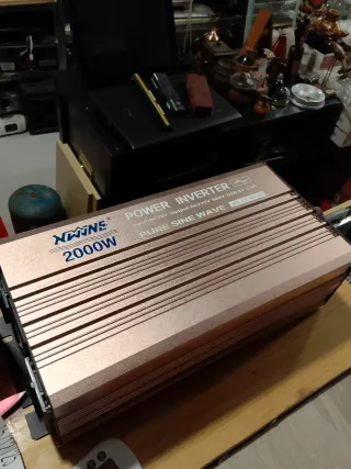 Inversor de corriente NWINE de 2000W con salida de onda sinusoidal pura. - Modelo: NWINE 2000W - Tipo de onda: Onda Sinusoidal Pura - Entrada: DC12V - Salida: AC230V 50Hz - Puerto USB: 5V 2.4A