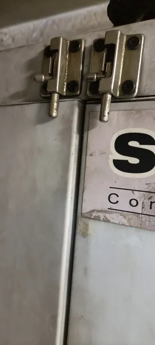 En perfecto estado. Perfecta de pintura Color negro. Alto 1100 ancho 960 fondo 6o mm. Más los 2 pivotes. El de sujeción de la puerta y el de cierre y cerradura de 100 mm se ancho x 60 mm de fondo. Manecilla y cerradura funcionan perfectamente.