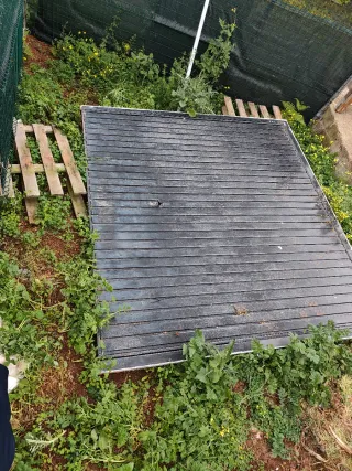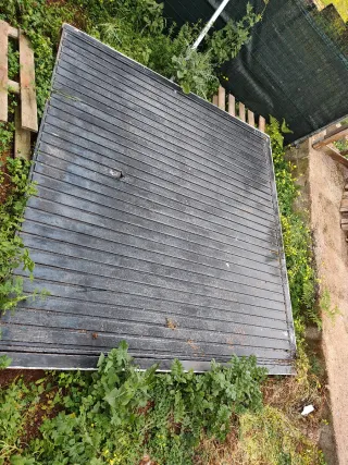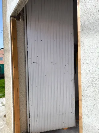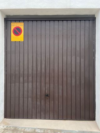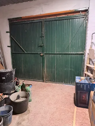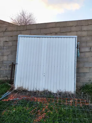 Portón de garaje en muy buen estado. Medidas: 240 × 210 cm (210 cm de alto). Estructura sólida, funcionamiento correcto. Ideal para garaje, almacén o nave. Precio: 195 €. Garage door in very good condition. Size: 240 × 210 cm (210 cm height). Solid structure, fully functional. Ideal for garage, storage or warehouse. Price: €195.