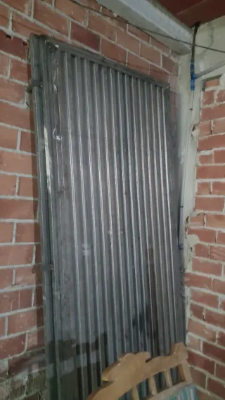 se vende trasera para cochera o nave son 2 hojas q se pueden hacer libro o corredera tiene un total de 3m de ancha por 2.60 de alta fuerte la trasera con cerradura