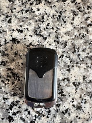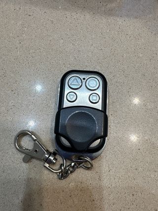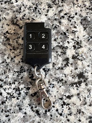 Mando a distancia para puerta de garaje con cuatro botones. Esta en perfecto estado e incluye pila.