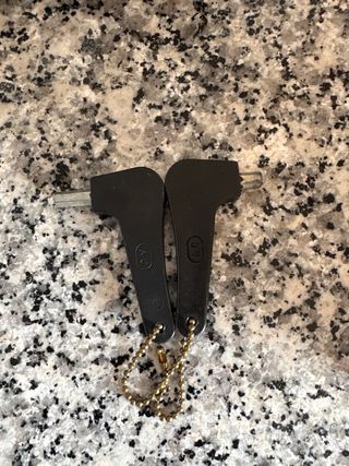 Se venden dos llaves para motor de puerta de garaje. Son de color negro y vienen unidas por una cadena. - Color: Negro - Material: Plástico y metal - Incluye cadena - para poner motor puerta garage en modo manual