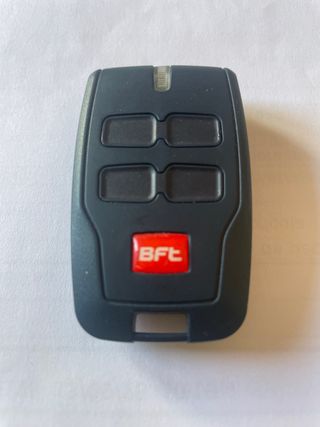 Mando a distancia para puerta de garaje de la marca BFT. Diseño en color negro con cuatro botones. Nuevo sin ningún uso. Está sin pila.