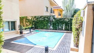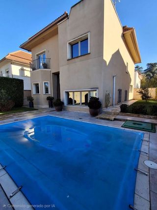 GILMAR MIRASIERRA & PUERTA DE HIERRO presenta impresionante chalet pareado ubicado en uno de los enclaves más exclusivos de la capital, la Colonia de Fuentelarreina-Puerta de Hierro. Este majestuoso inmueble construido en 2010 está diseñado para aquellos que buscan una vivienda espaciosa, moderna y con acabados de la más alta calidad. Con una superficie construida de 540 m², distribuidos en 4 plantas que conectan internamente por una cómoda escalera y ASCENSOR, este chalet ofrece un total de 6 dormitorios cada uno con cuarto de baño en suite, armarios empotrados y finamente vestidos, un aseo de cortesía, cocina independiente con zona office con todos los electrodomésticos incluidos, salón comedor con chimenea y fabulosa terraza exterior con toldos. Su diseño arquitectónico combina funcionalidad y elegancia, destacando las terminaciones en mármol y maderas nobles en suelos que aportan calidez y sofisticación a cada estancia. La vivienda dispone de climatización por suelo radiante y aire acondicionado frio/calor por conducto canalizado en toda la vivienda, así como aspiración centralizada. El exterior de la propiedad es igualmente impresionante. La parcela de 392,96 m² incluye un cuidado jardín y una piscina privada, ideales para disfrutar del buen tiempo y relajarse en un entorno tranquilo. Además, dispone de un garaje con capacidad para 3-4 vehículos, una característica imprescindible para una vivienda de este nivel. En cuanto a la ubicación se encuentra en un barrio residencial que destaca por su tranquilidad y exclusividad, rodeado de zonas verdes como el Monte de El Pardo, perfecto para amantes de la naturaleza y el deporte al aire libre. Esta zona cuenta con una excelente conexión de transporte público, estación de metro a pocos minutos, así como varias líneas de autobuses y cercanías RENFE. Además, en las inmediaciones se encuentra una amplia oferta de servicios. En cuanto a compras y ocio, el Centro Comercial La Vaguada, uno de los más emblemáticos de la