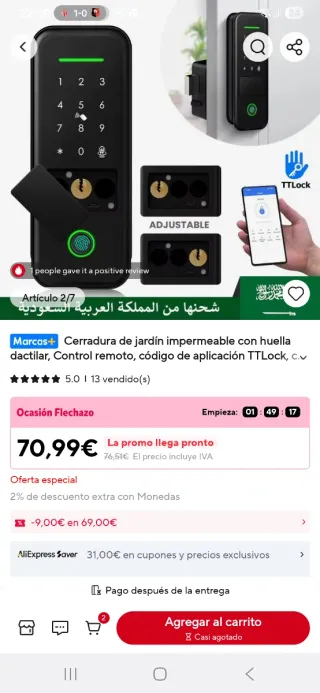 Cerradura inteligente para puerta de jardín casa garaje trastero etc resistente al agua y con control remoto. - Huella dactilar para acceso. - Control mediante aplicación TTLock. - Diseño moderno y funcional. - color negro Producto totalmente nuevo en caja sin estrenar