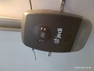Motor para puerta de garaje de la marca Jedi. Incluye mandos a distancia para su operación. - Diseño moderno en color gris. - Pantalla digital integrada.