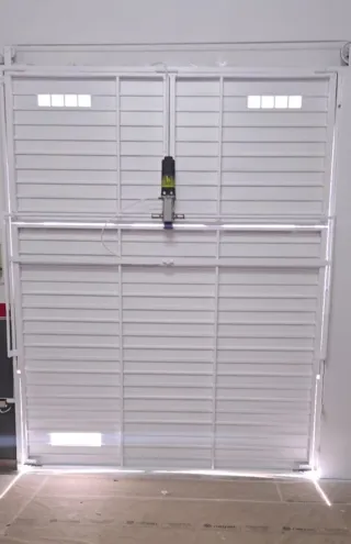 Se pintan puertas de garaje metálicas, - Estructura robusta de metal. - Diseño con lamas horizontales.