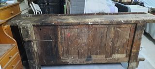 Banco carpintero antiguo rescatado de antiguo granero que lleva 65 años cerrado. Ideal para proyecto de restauración. 2 metros de largo con puertas y tornillo de presión.