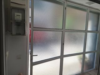Puerta de hierro con paneles de vidrio armado. Muy buen precio Por sólo 150 Euros - Marco de hierro resistente. - Paneles de vidrio armado. - La puerta con cerradura. Medidas: Ancho: 285 cm Alto: 250 cm