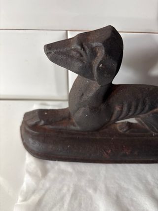 Este tope de puerta está hecho de hierro fundido con forma de perro. - Diseño de perro dachshund. - Base rectangular.