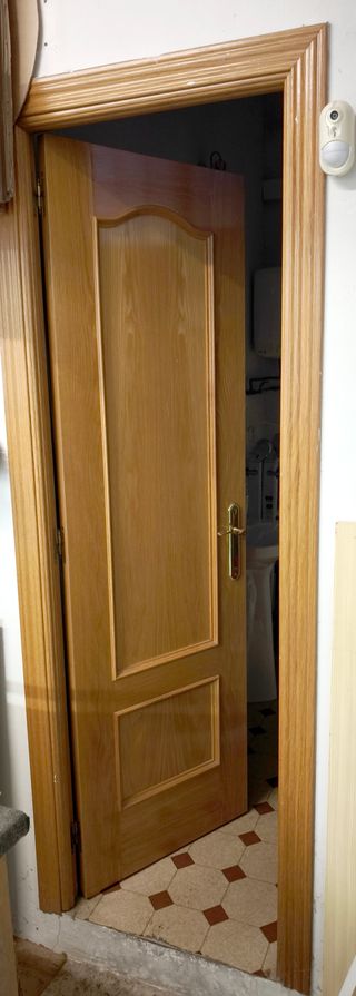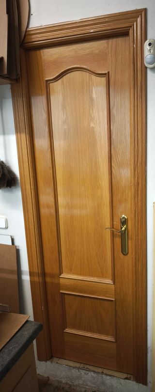 *LIQUIDACION POR CIERRE* Puerta interior de madera. - Marco de madera de roble. - Incluye manilla dorada. - Incluye molduras. - Medidas: 62 x 203 - Cerrojillo interior Para recoger en C/Parque Eugenia de Montijo (Carabanchel). No hacemos envios